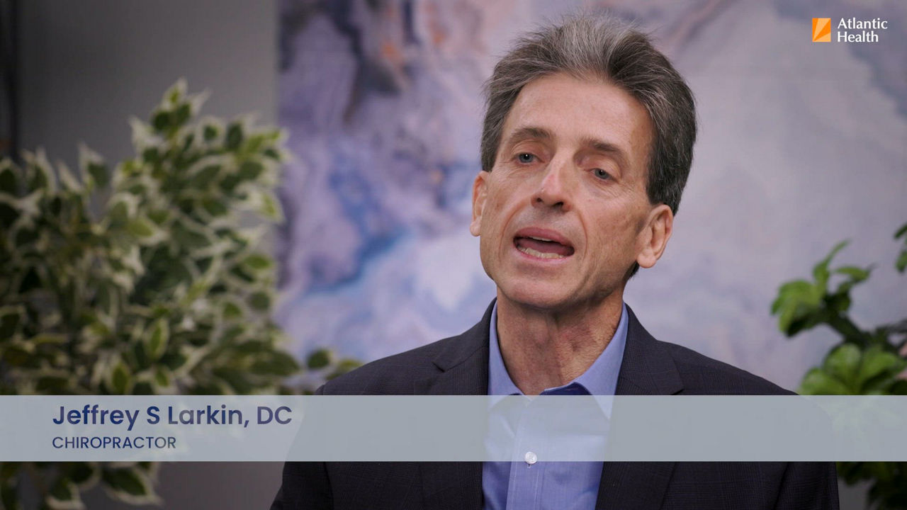 Jeffrey Larkin, DC, is a chiropractor with Atlantic Health with more than 30 years of experience specializing in the diagnosis and treatment of neuromusculoskeletal conditions through noninvasive, evidence-based chiropractic care. He is dedicated to providing compassionate, personalized care to all patients and ensuring they are educated about their condition and treatment.